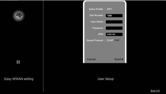 | Dial Number : | The default is *99#. This field should not be altered unless required by your service provider. |